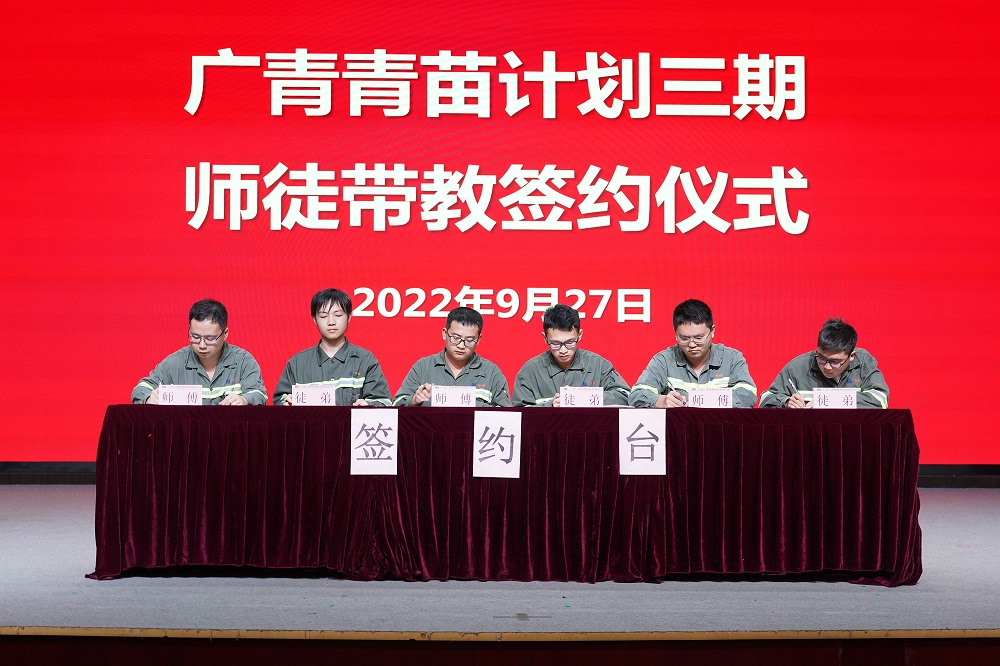 9月27日,广东广青金属科技有限公司青苗计划三期启动仪式暨师徒带教签约仪式在公司四楼礼堂举行。公司党委副书记王大庆、常务副总经理刘光勇、相关部门负责人、青苗计划往期师徒代表以及青苗计划三期28对师徒参加此次仪式。