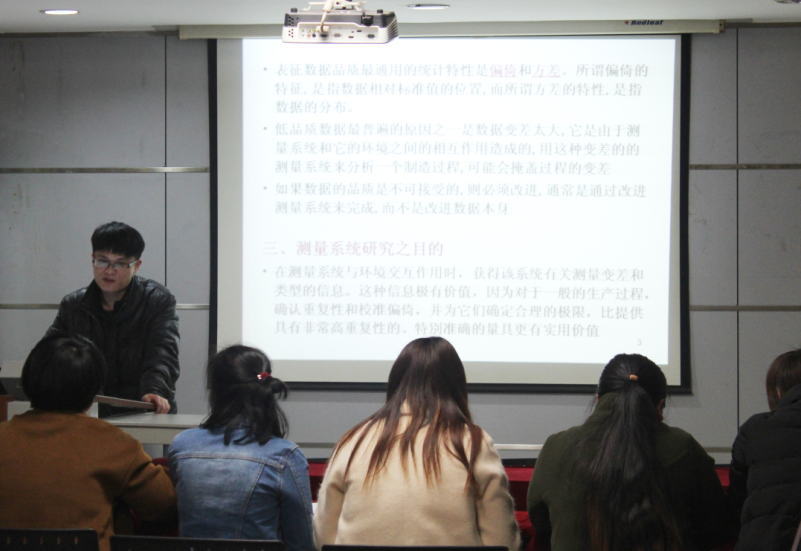 本次培训重点讲解了测量数据品质、测量术语、测量系统的统计特性、评价测量系统时需确定的基本问题、测量系统的分辨率、测量系统变差的类型、测量系统研究的准备工作、测量系统分析实施流程及测量系统研究的注意事项等方面的内容。培训过程中大家对日常工作中遇到的测量数据偏差较大的案例进行探讨,分析造成测量误差的原因并寻求降低误差的方法。